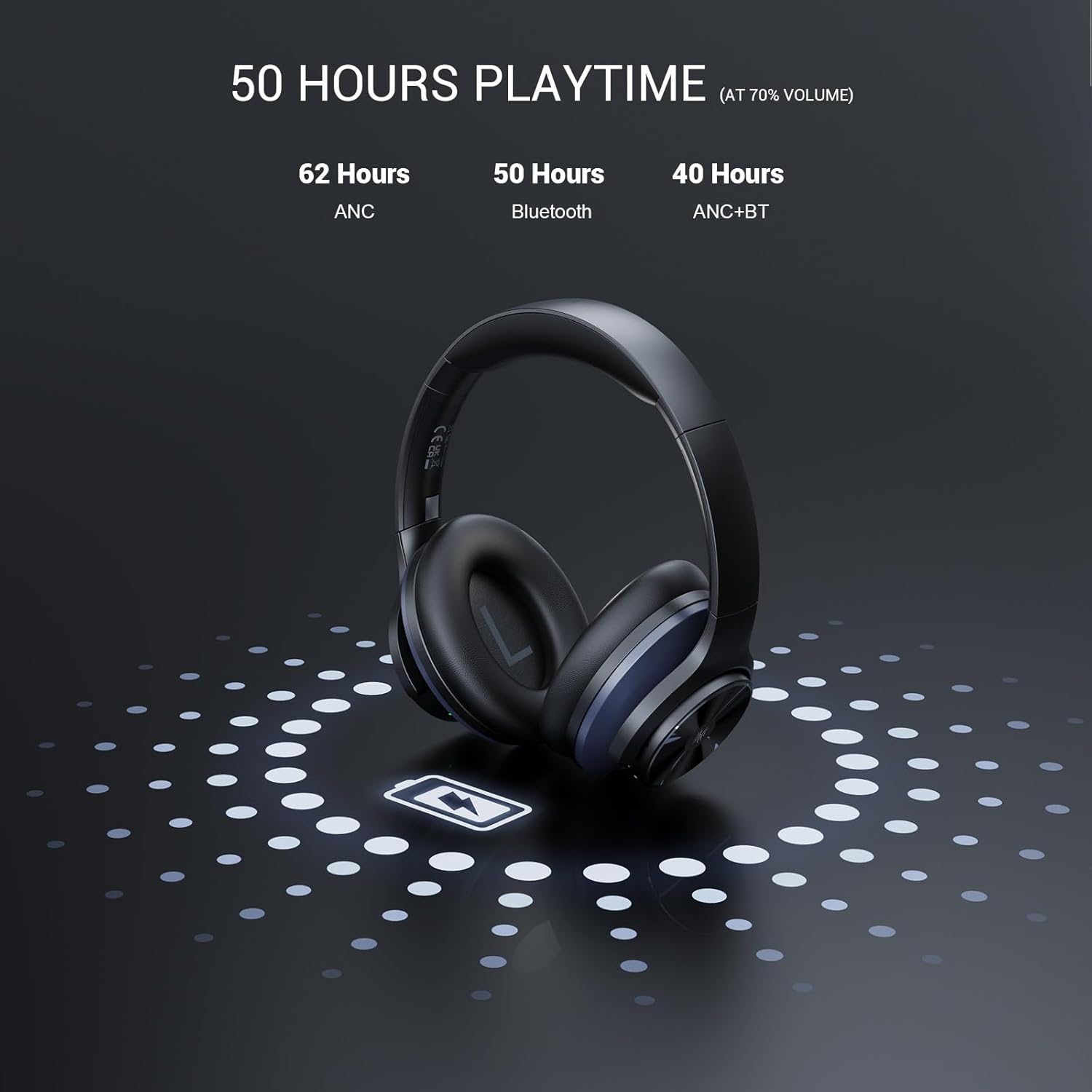 Featuring cutting-edge hybrid active noise-cancelling technology, the A10 headphones block out unwanted external noise, allowing you to focus on the music without any distractions. With a remarkable 50-hour long playtime, you can enjoy your favorite tunes all day long without worrying about running out of battery.