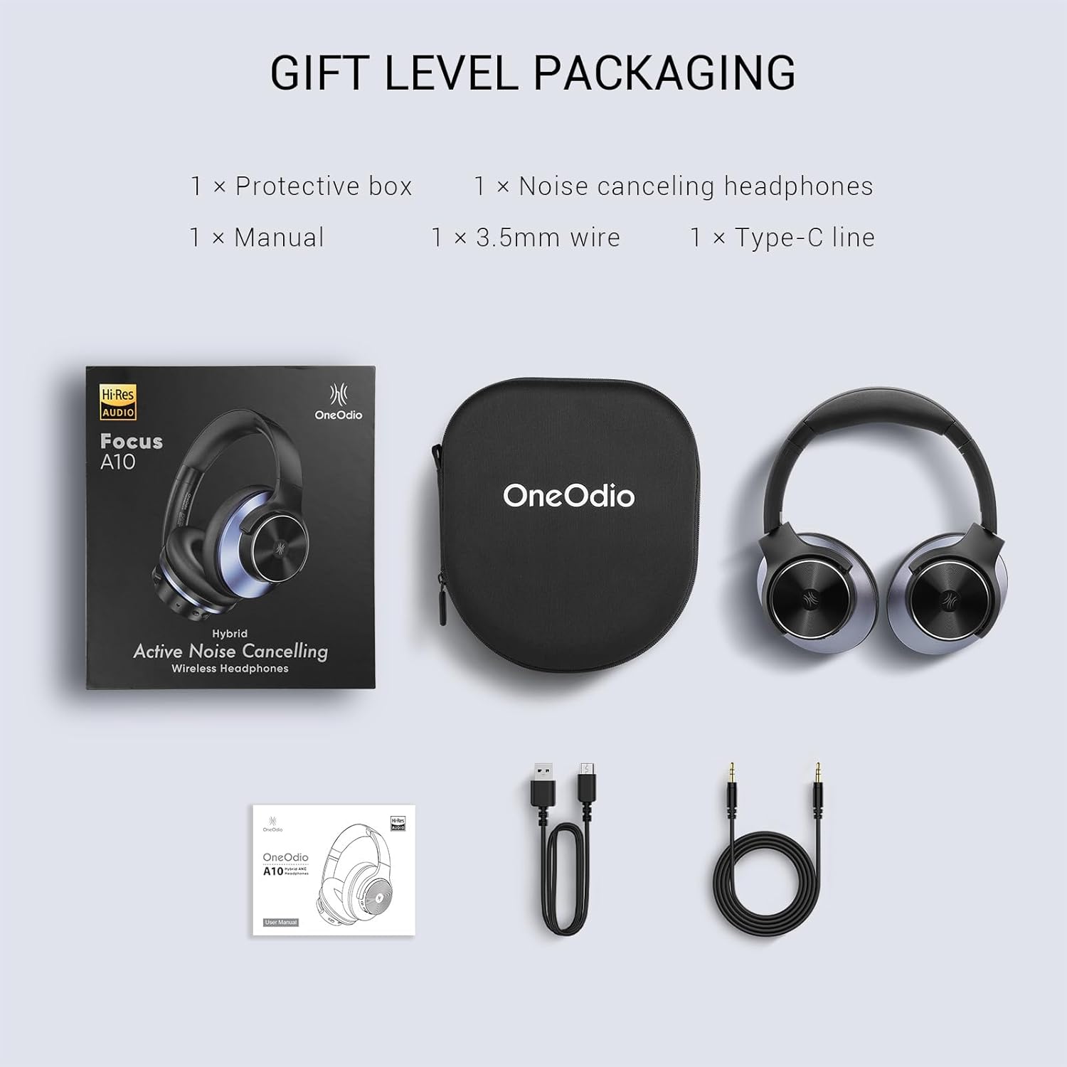 OneOdio A10 Hybrid Active Noise Cancelling Headphones, Wireless Over Ear Bluetooth Headphones, Hi-Res Audio Sound, 50H Long Playtime, Deep Bass, Wireless & Wired 2-in-1, Ideal for Travel Gym Workout